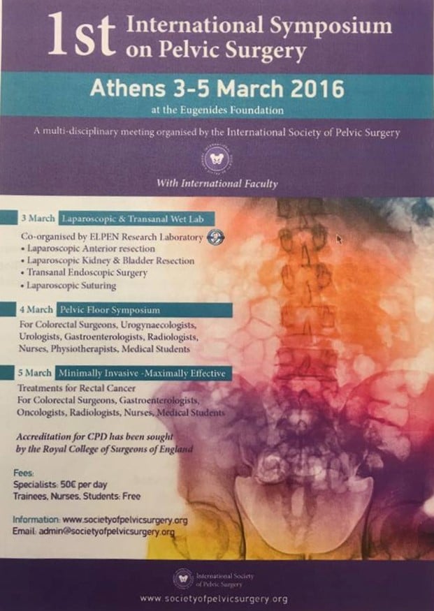 Από τις 3 έως τις 5 Mαρτίου παρακολούθησα στο Ευγενίδειο Ίδρυμα το 1ο Συμπόσιο που αφορά την περιοχή της λεκάνης, (1st Pelvic Symposium).